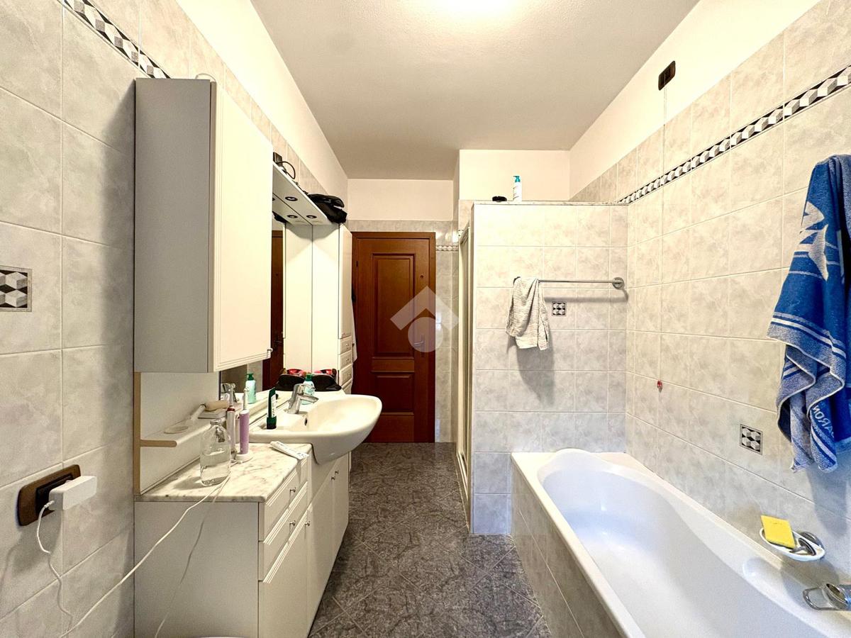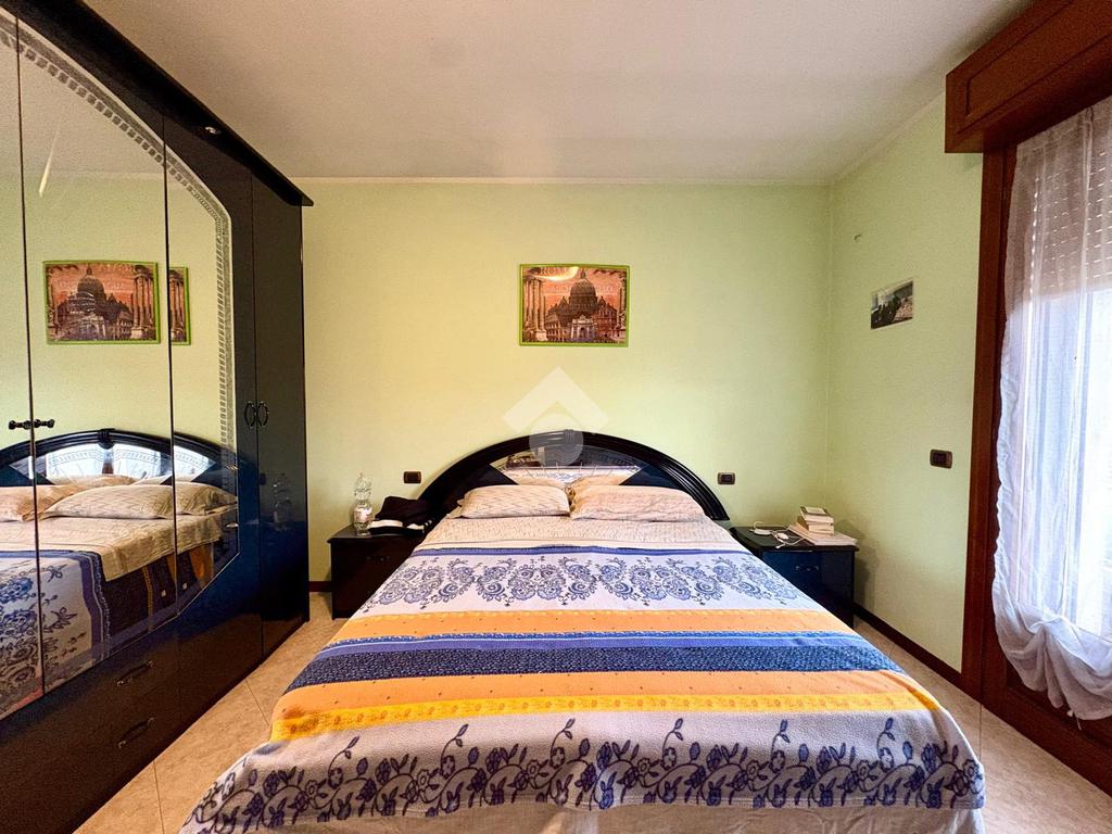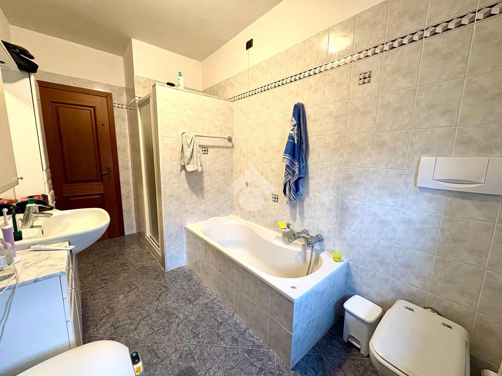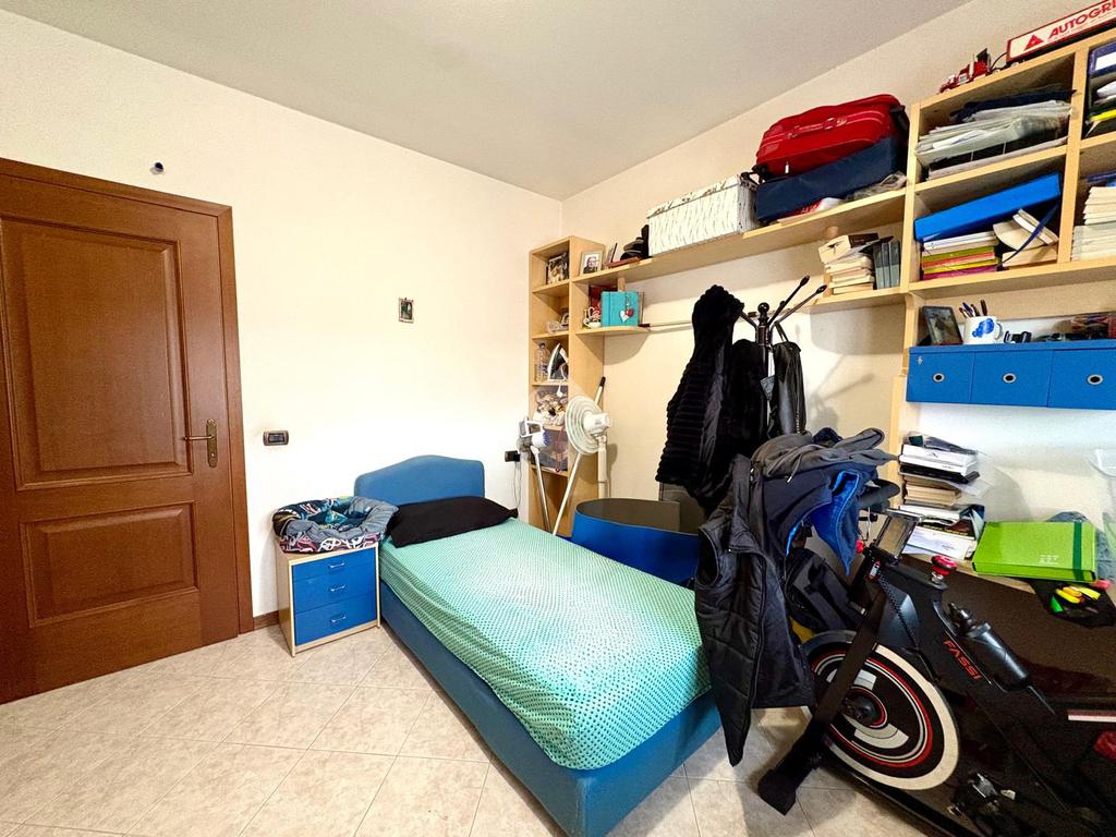 La zona notte comprende due ampie camere matrimoniali e una camera singola, ideali per famiglie o per chi necessita di uno studio. Il bagno è ben rifinito e funzionale.