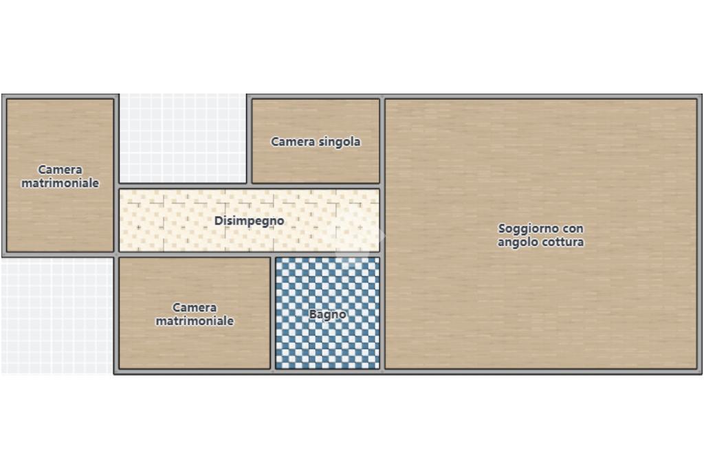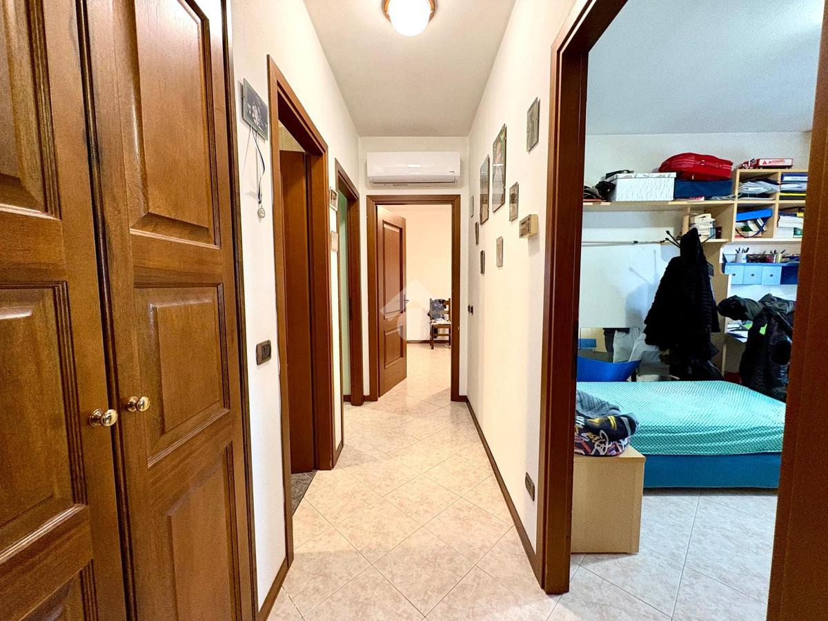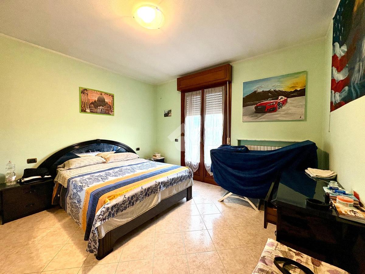 La zona notte comprende due ampie camere matrimoniali e una camera singola, ideali per famiglie o per chi necessita di uno studio. Il bagno è ben rifinito e funzionale.
