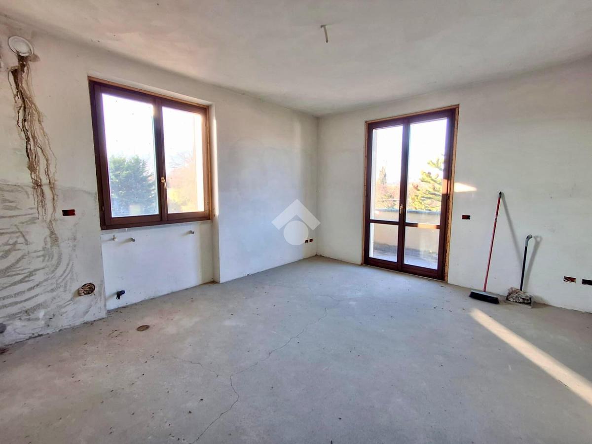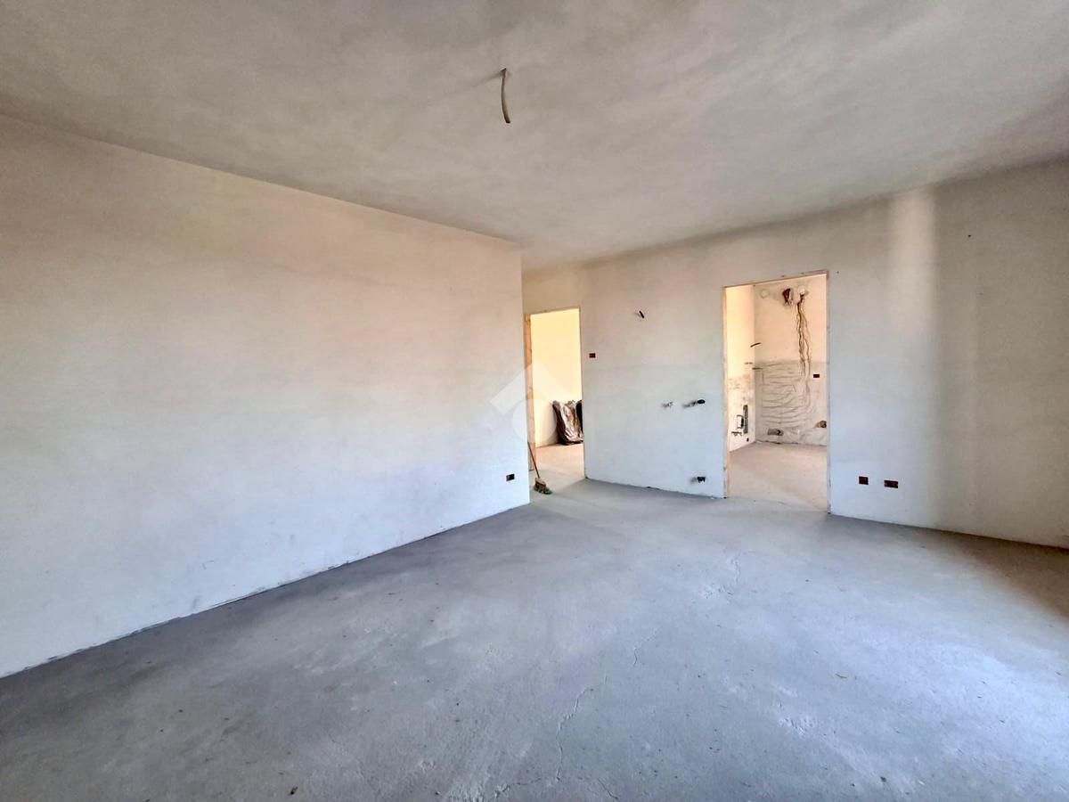 Il primo piano si presenta allo stato grezzo avanzato, con impianti e infissi pronti.