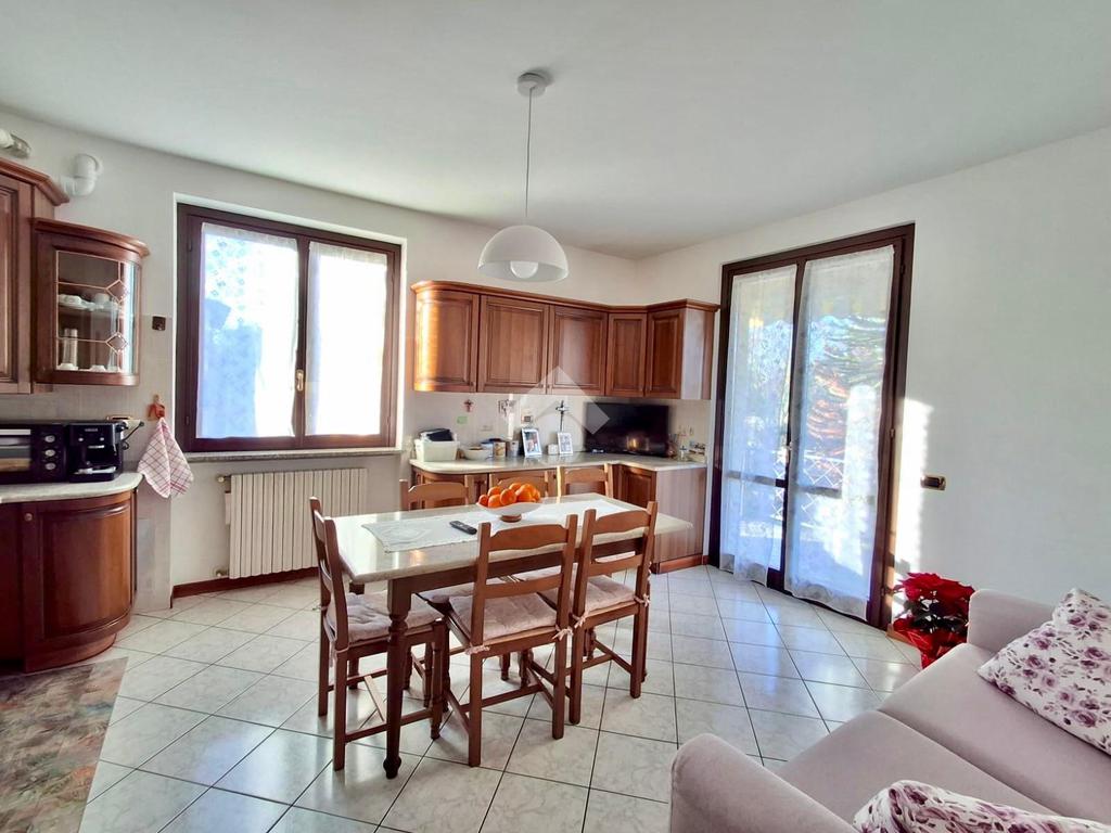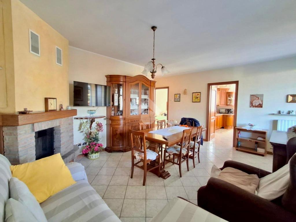 Al piano terra, l'immobile accoglie con una luminosa sala dotata di camino, perfetta per momenti di relax in famiglia. La cucina adiacente è funzionale e ben organizzata.